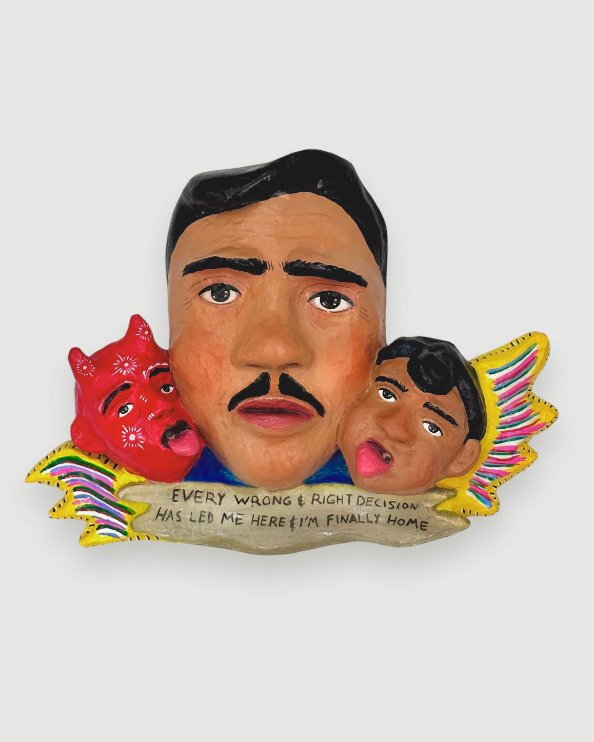 Paper mache, acrylic paint, artist resin