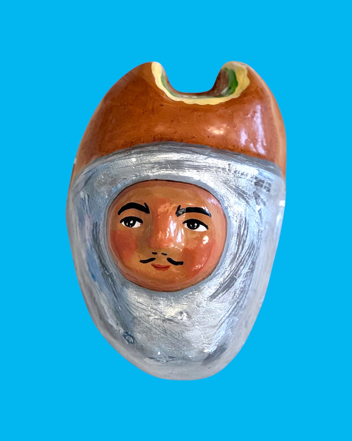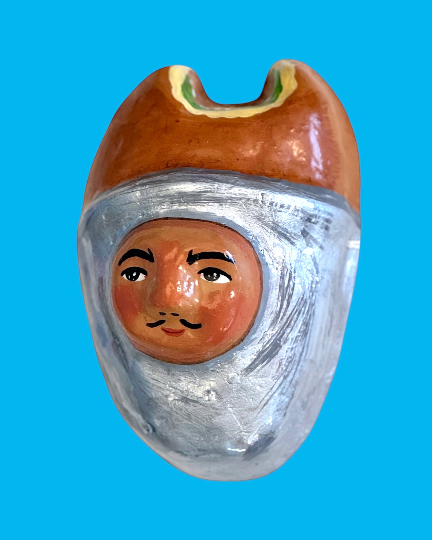 Info: This piece is formed from layered paper mache, painted with acrylics and finished with a semi-glossy artist resin to preserve the artwork.